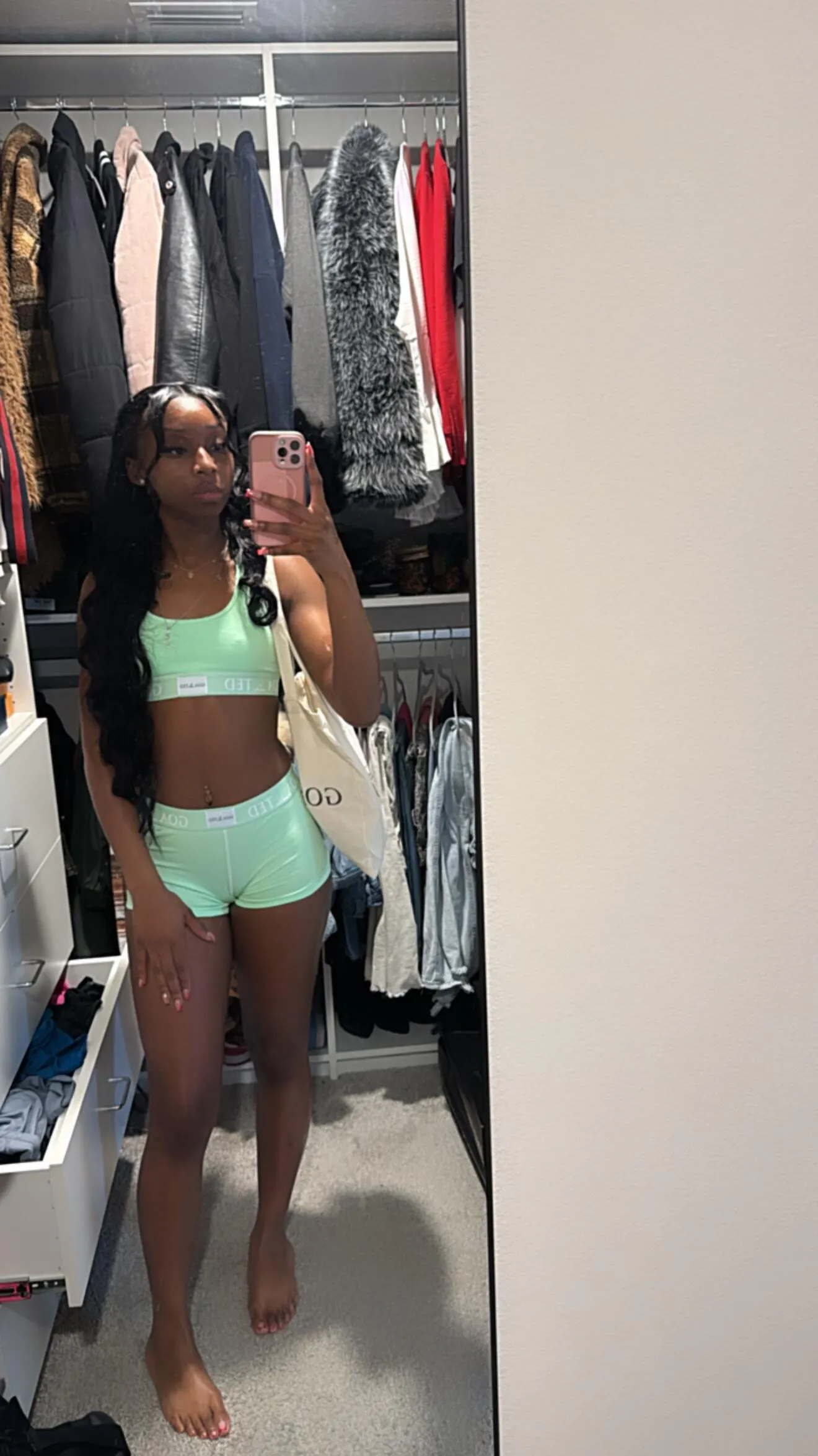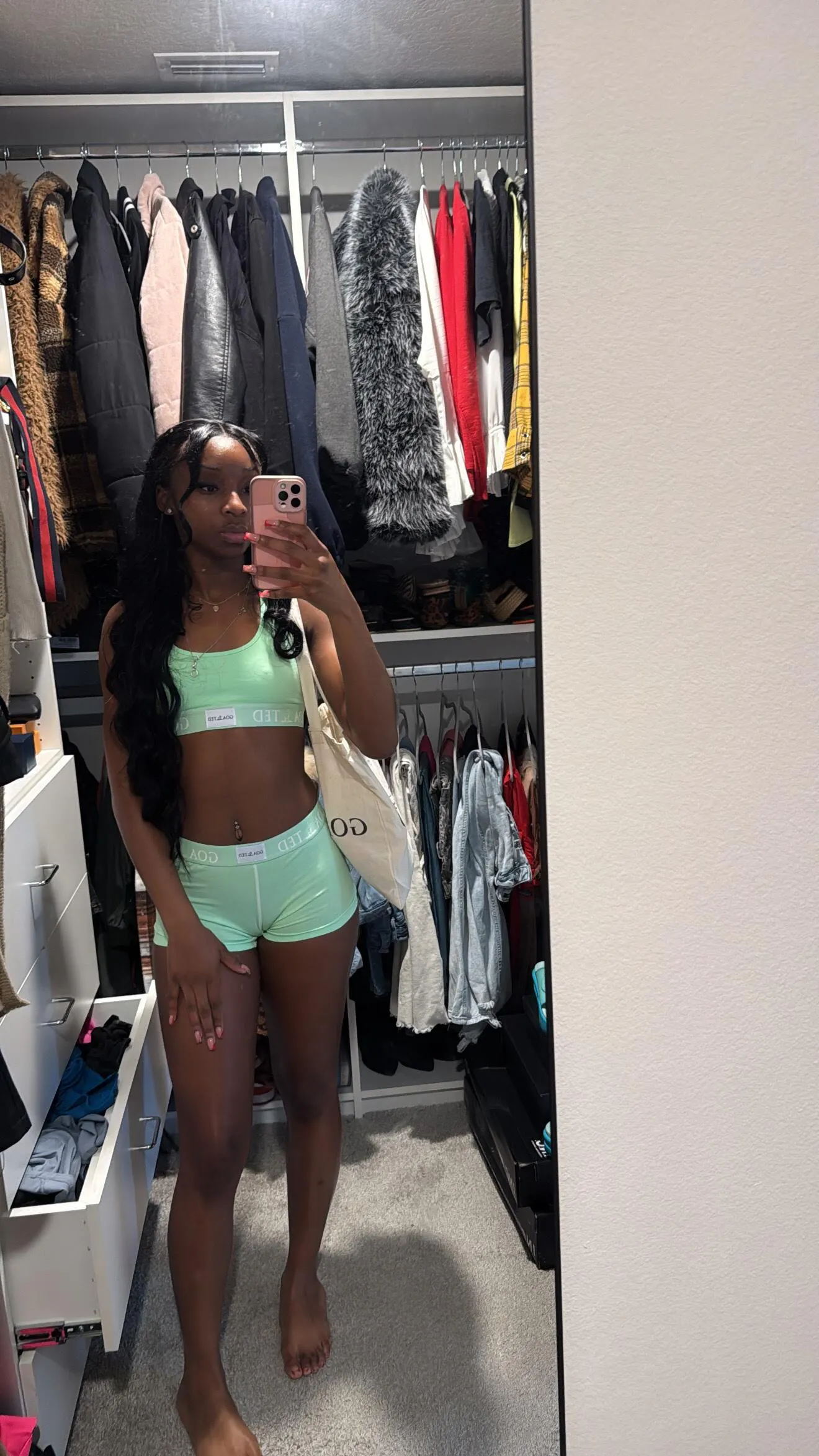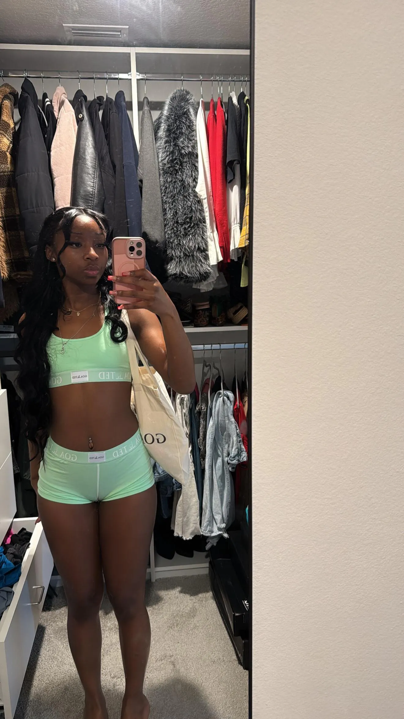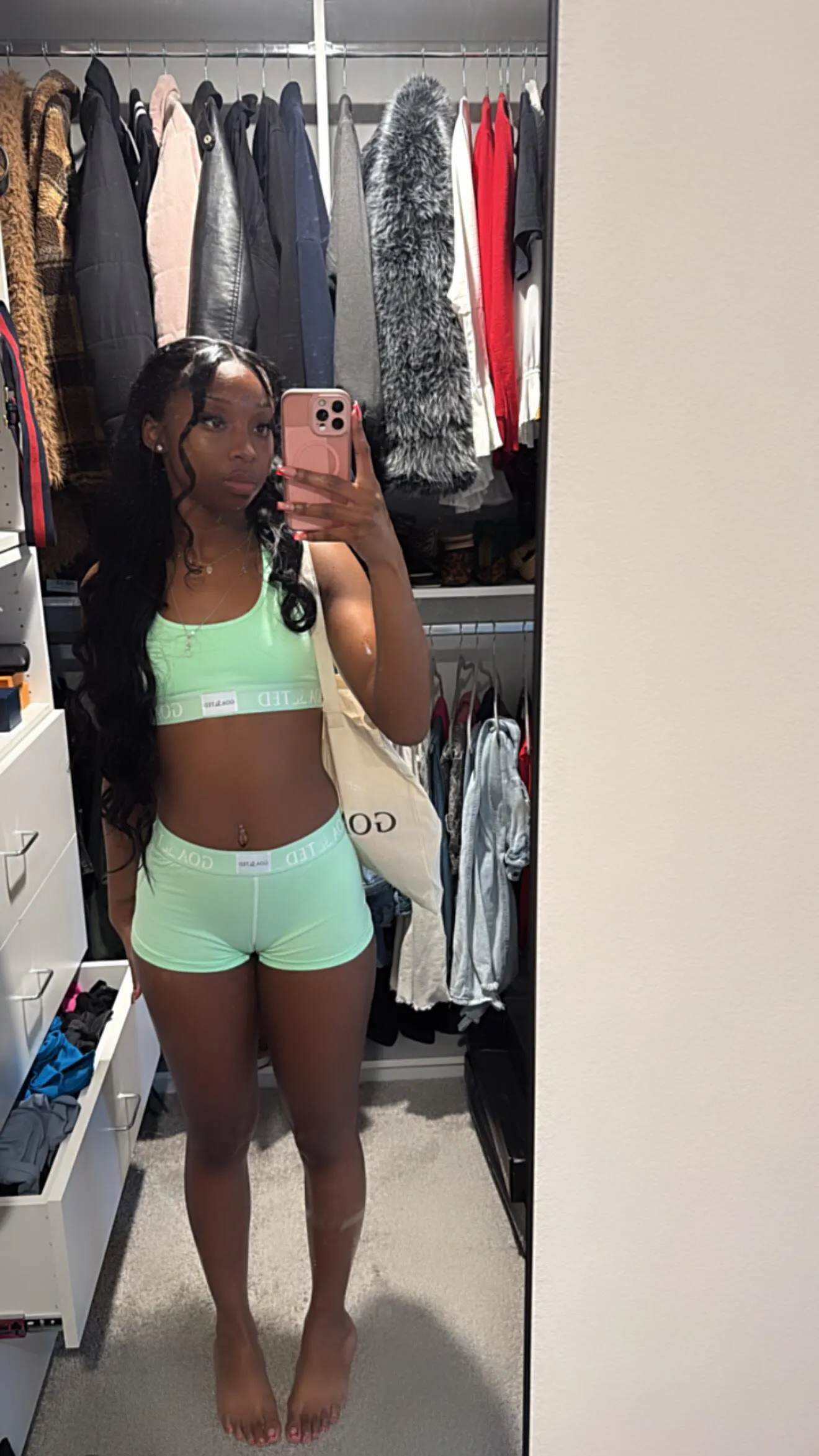 Includes sports bra and shorts with matching GOATED tag